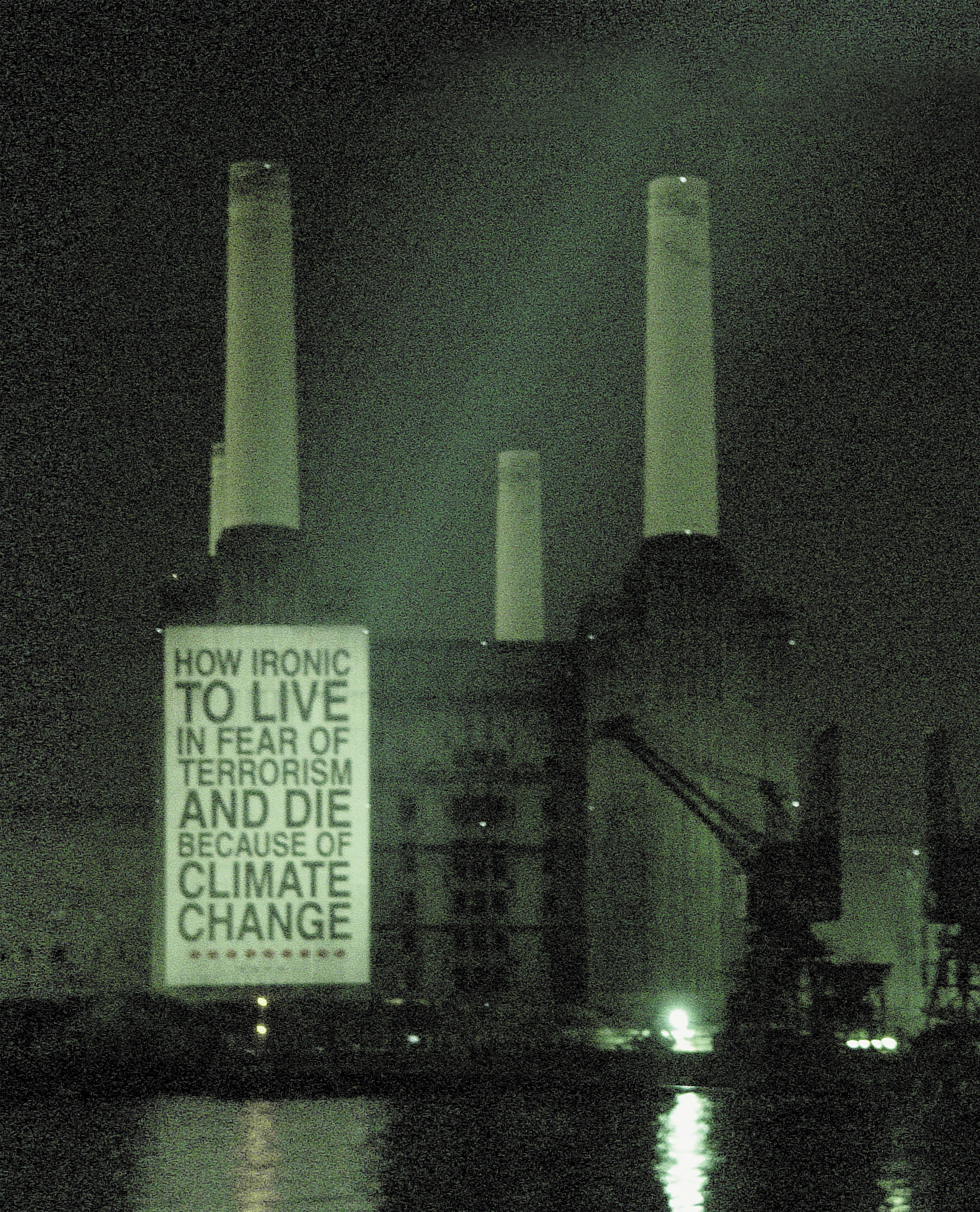 2006, digital projection, Battersea Power Station. Photographed by Pod Blumen, 1 November 2006.