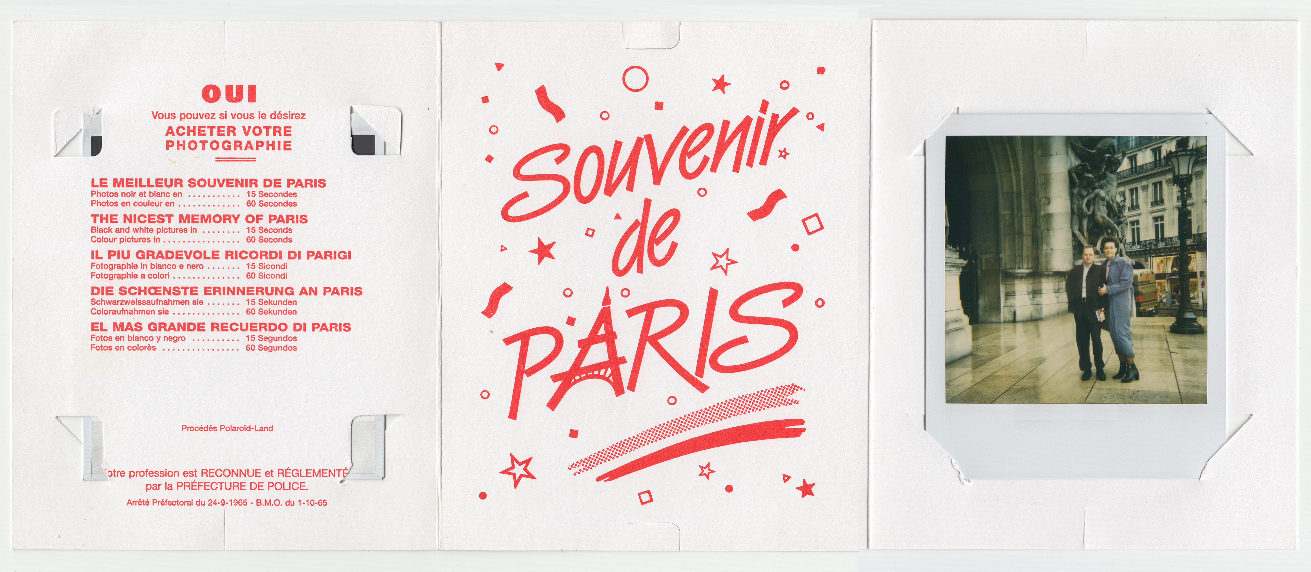 Martin Firrell and Yekaterina Lebedeva in front of the Palais Garnier, Paris France. Colour polaroid in cardboard folder. Photograph by tourist photographer, name unknown, precise date unknown, April 1998.