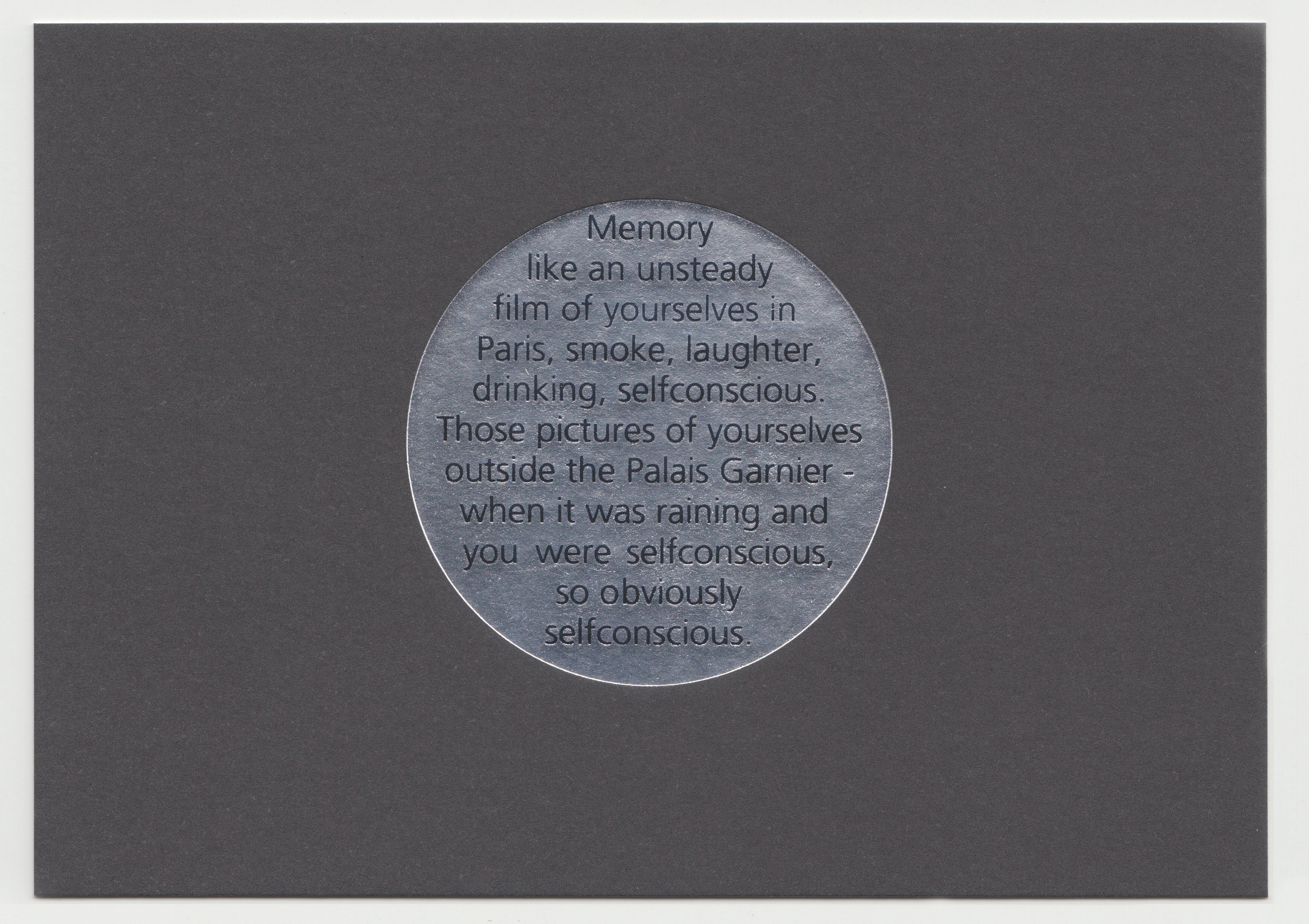 1998. 148 x 104mm, Black card, die-struck silver foil, black type.