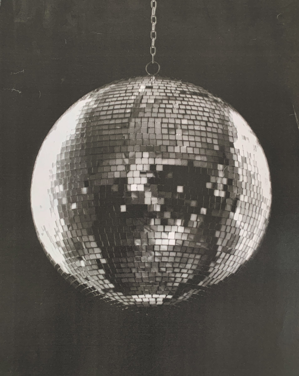 is a digital animation of simple b&w images of the artist, two drag queens named 'Suzette' and 'Desire' embracing, and a glitter ball. Text panels, derived from the artist’s journals, punctuate the images calling for acceptance of, and engagement with, what is 'other'.