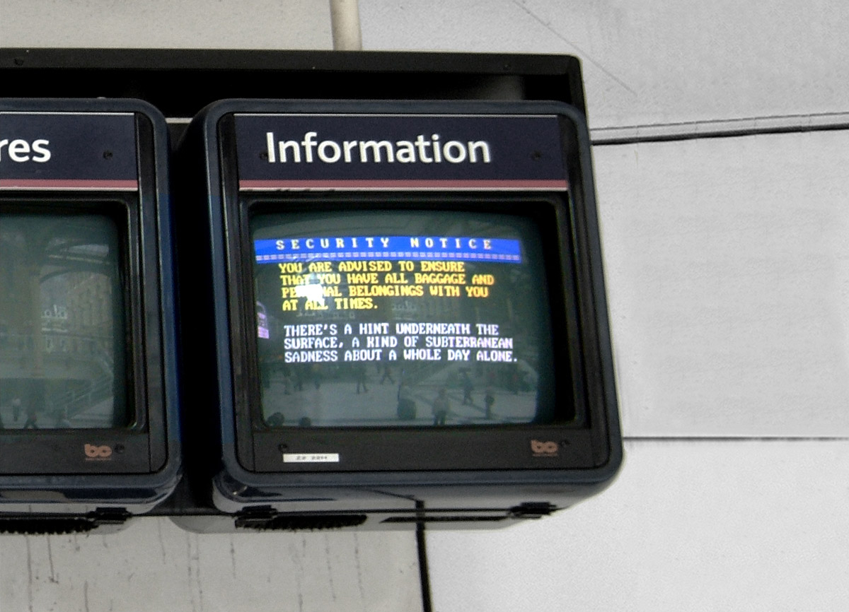 The artwork repurposed the programmable VDU monitors in Liverpool Street Station, London UK.