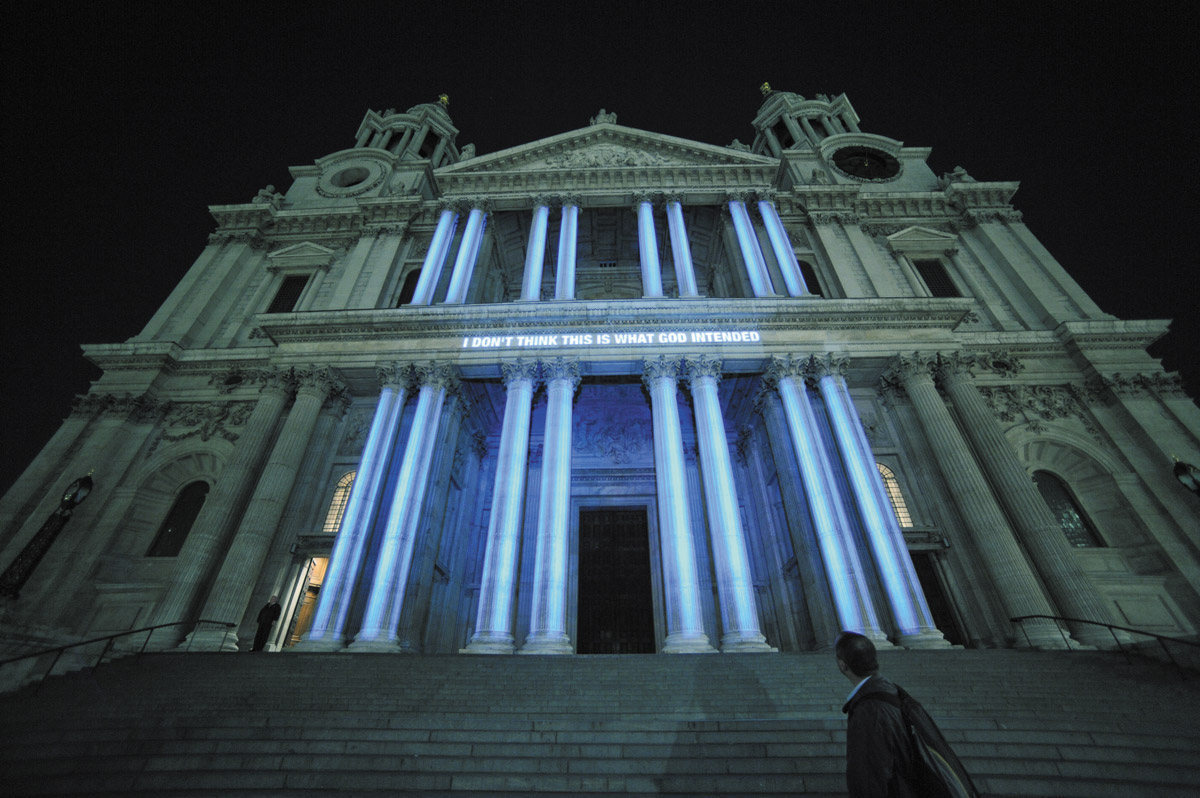 The resulting texts, from the domestic to the sexual to the sublime, were projected onto the exterior of the cathedral dome, the West Front at Ludgate Hill, and the interior of the Whispering Gallery.