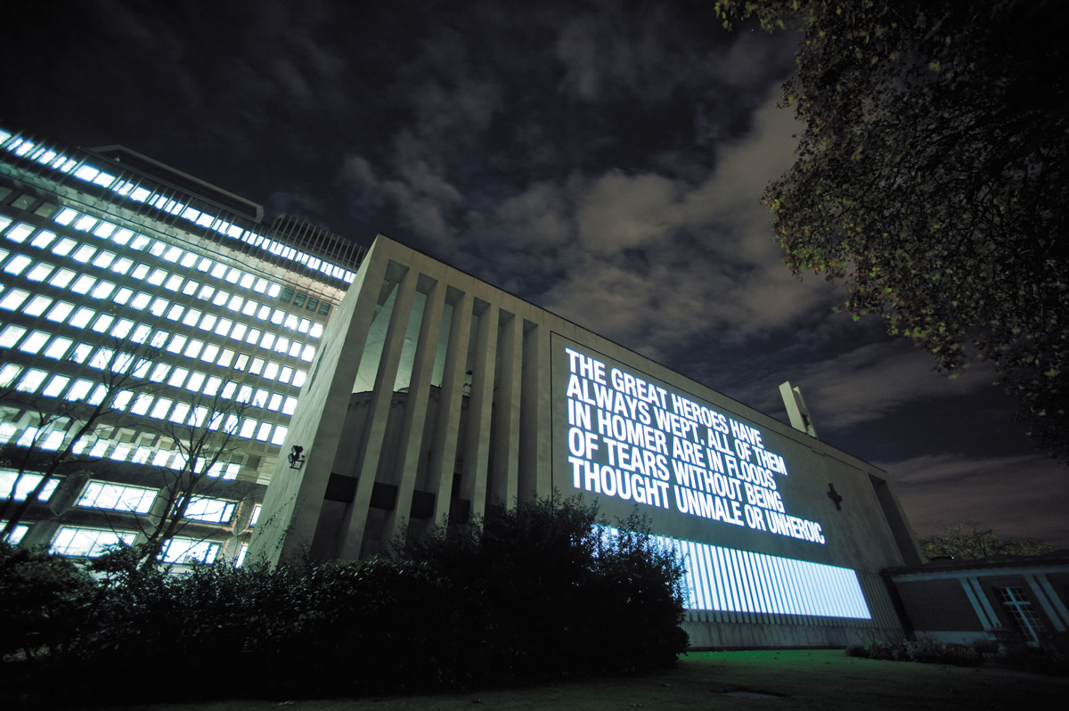 In 2009, Firrell was artist in residence with the Household Division of the British Army. His projection work