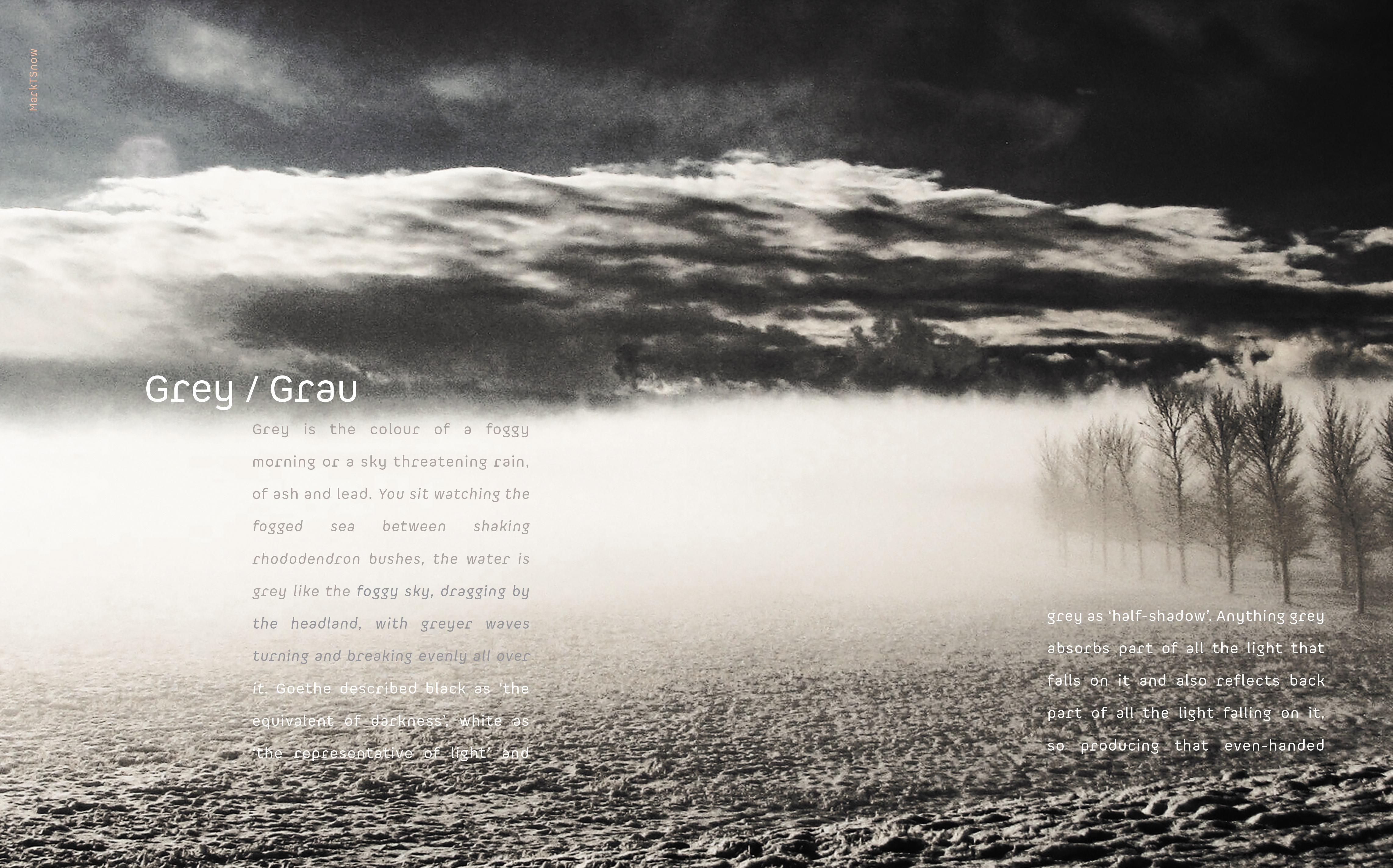 Published by Martin Firrell Company in a bi-lingual edition (German/English), 1 July 2021, ISBN 9781912622320. The text illustrated introduces the opening arguments into the nature of Grey/Grau.