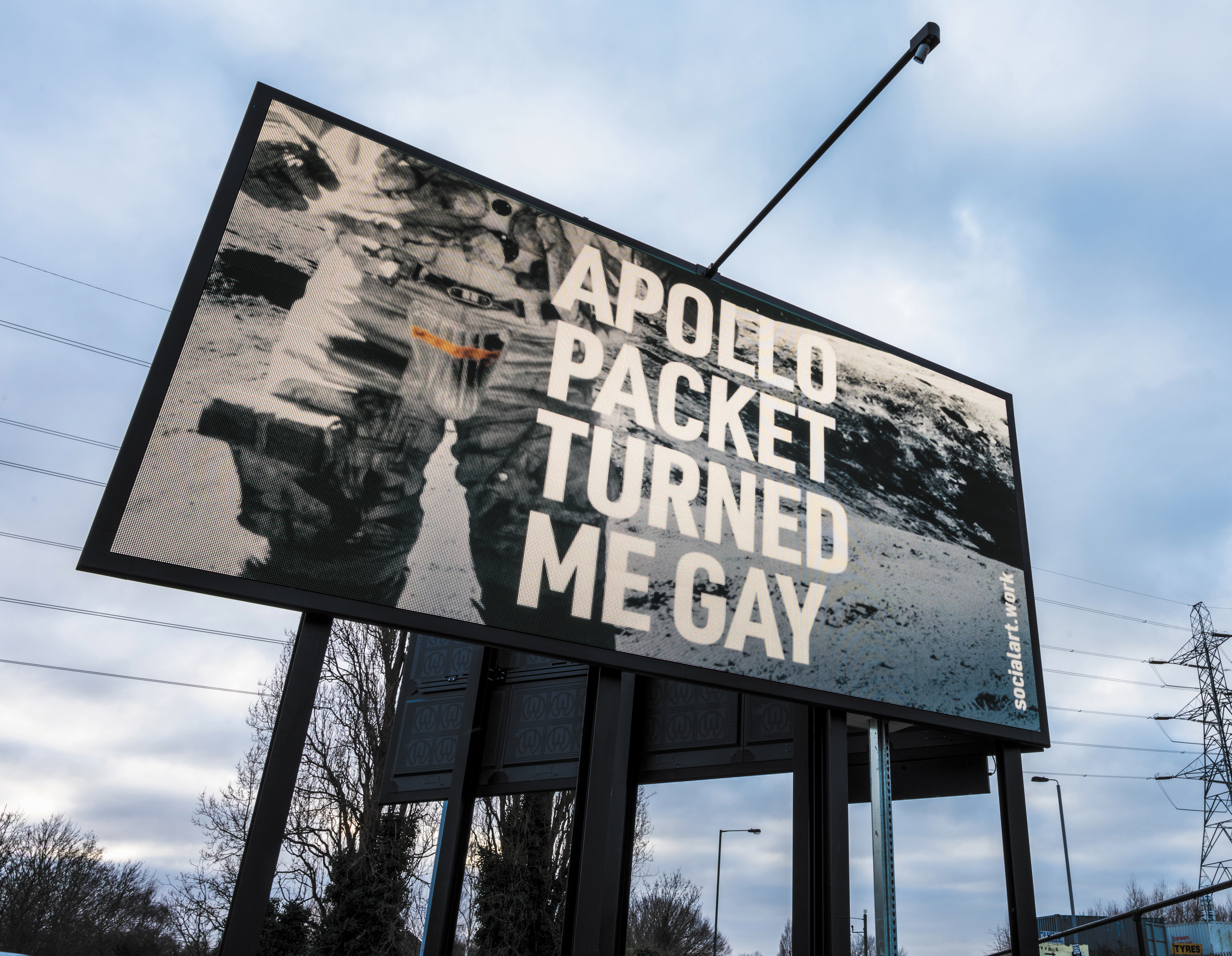 a series of 4 billboards heralding the 50th anniversary year of Gay Pride in the UK. Digital 48-sheet billboard, Lea Valley, London UK. Photographed by Yves Salmon, 24 January 2022.