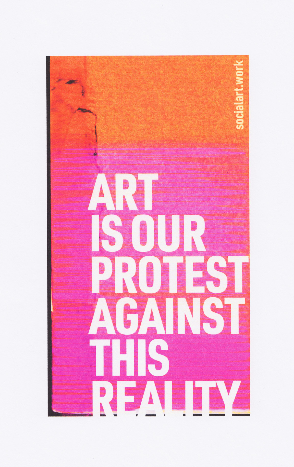 is a series of 4 digital posters created for the cities of Zurich and Basel. The artworks magnify flaws like tears, uneven inking and foxing in the fabric of the original Dada pamphlets. A fault in a digital printer at the artist’s studio produced further unexpected colour effects which the artist liked and retained.