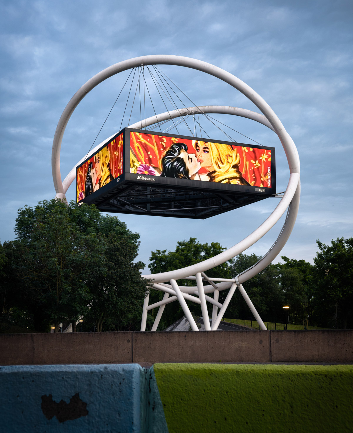 . The women have been extracted from traditional 1950s heterosexual embraces and placed together in a same-sex clinch.