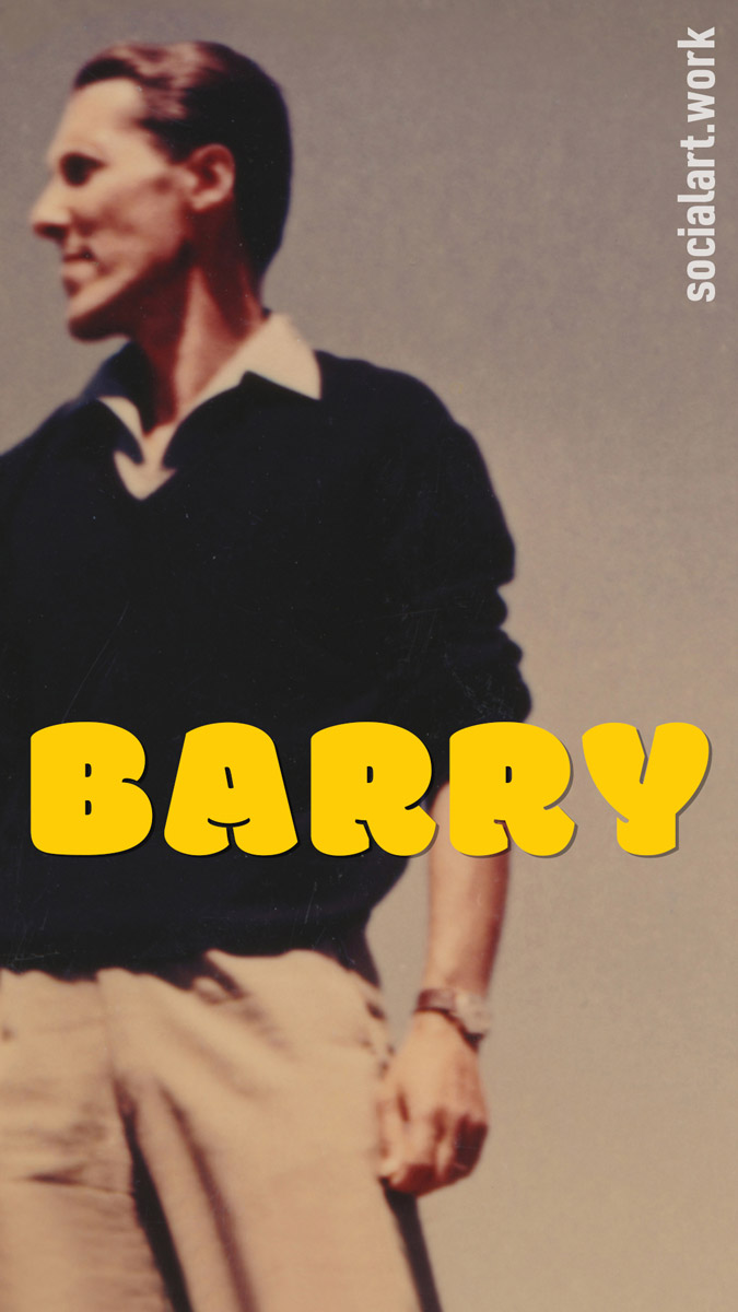 repurposes an intentionally mundane image from a 1970s clothing catalogue. By celebrating an 'ordinary' man called Barry, dressed in 'ordinary' clothes in an 'ordinary' photograph, the artist stresses the inherent value in all men.