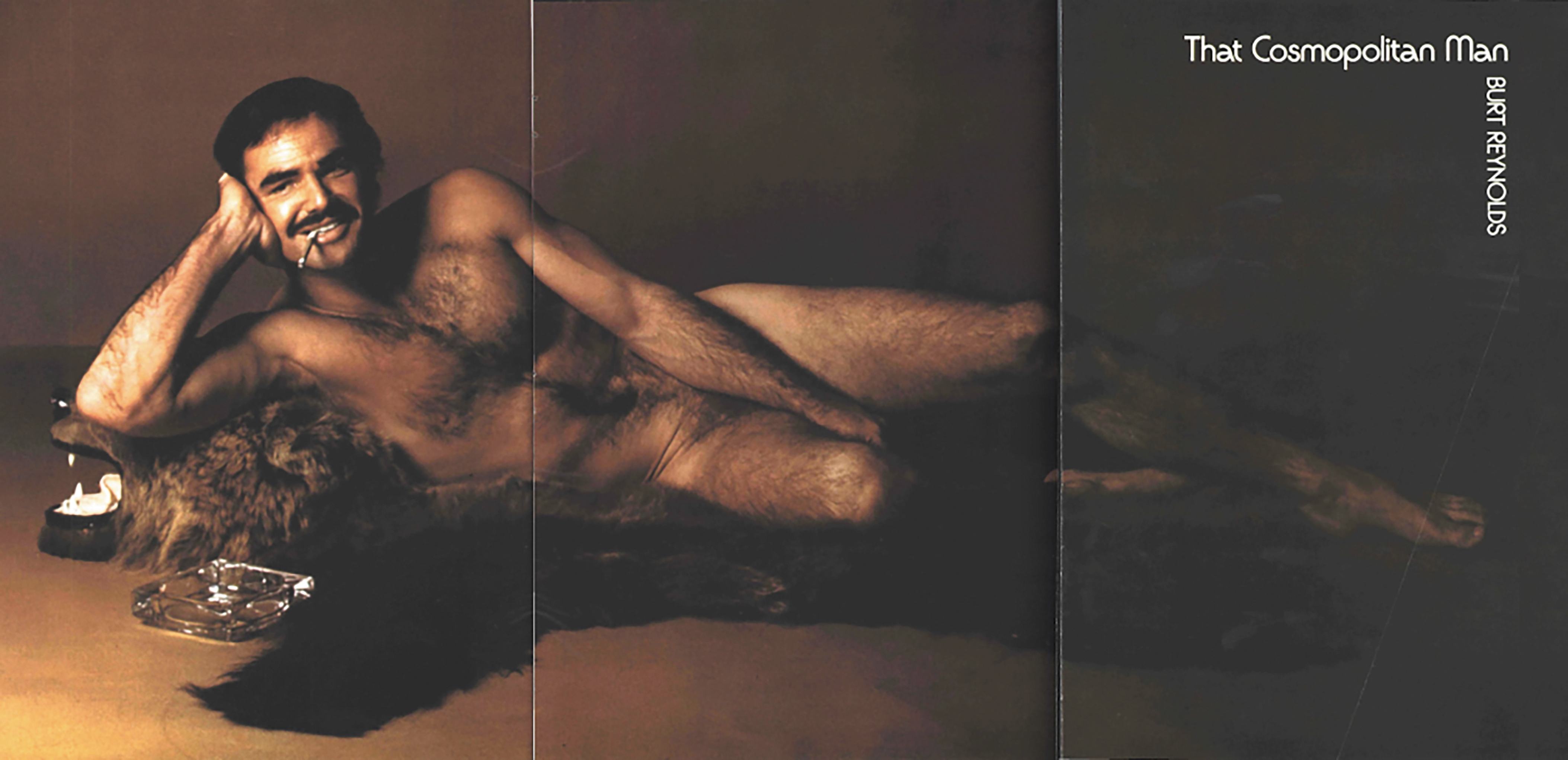 Burt Reynolds centrefold, photographed by Francesco Scavullo for Cosmopolitan magazine, April 1972. Cosmopolitan Editor Helen Gurley Brown pitched the idea to Reynolds as 'a milestone in the sexual revolution'. Reynolds himself selected the final image.