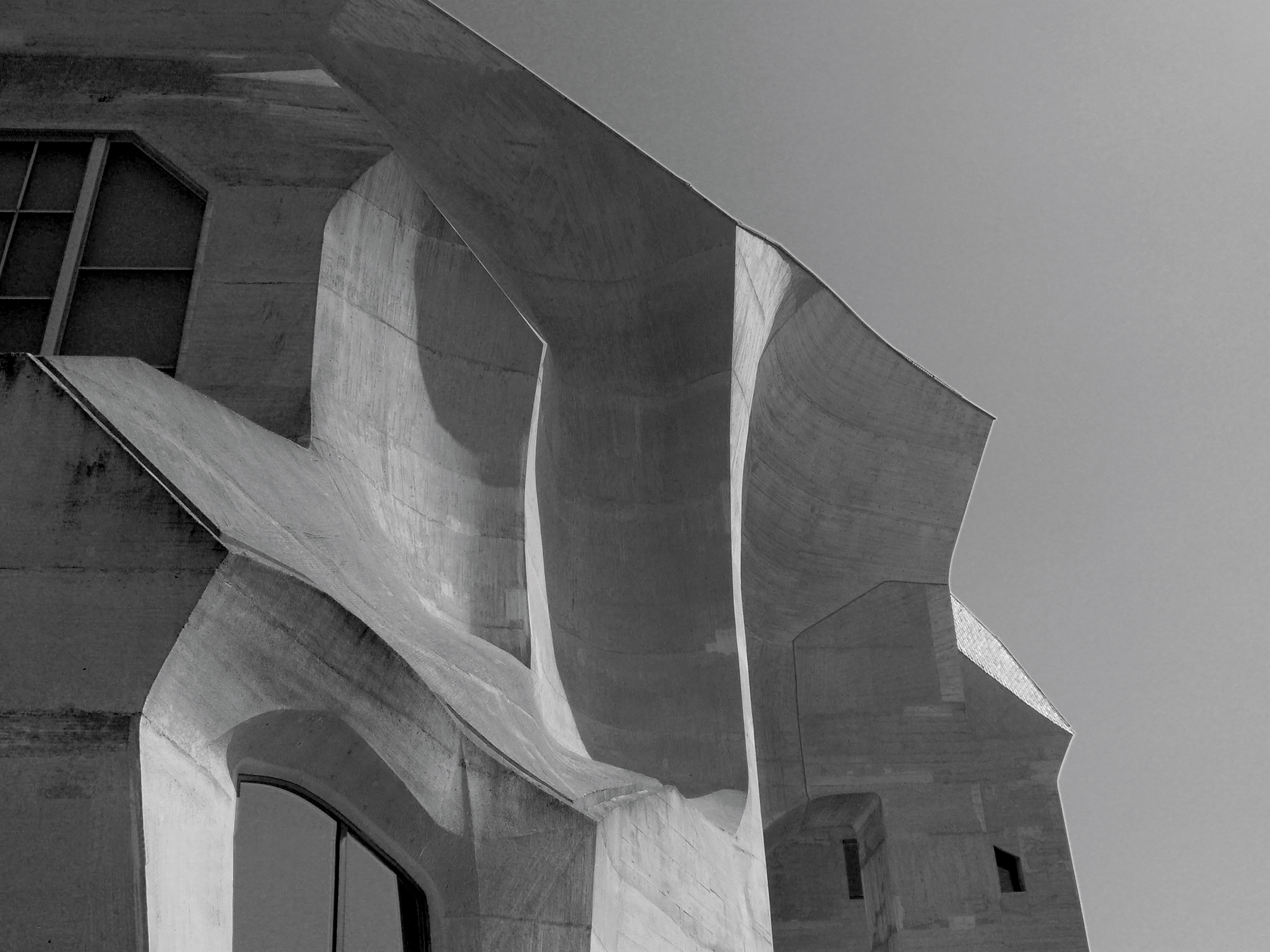 The organic, poured concrete forms of Rudolf Steiner's Goetheanum from the South, Dornach near Basel, Switzerland. Photographed by Soare, 6 April 2005 via wikimedia commons (https://commons.wikimedia.org/wiki/User:Soare)
